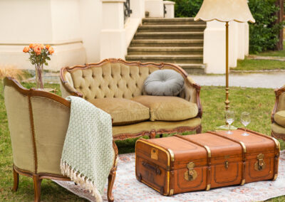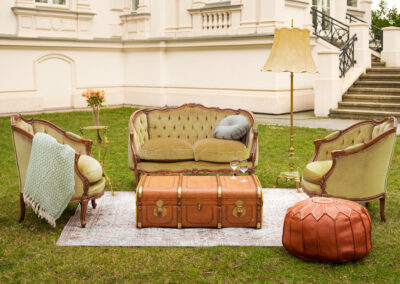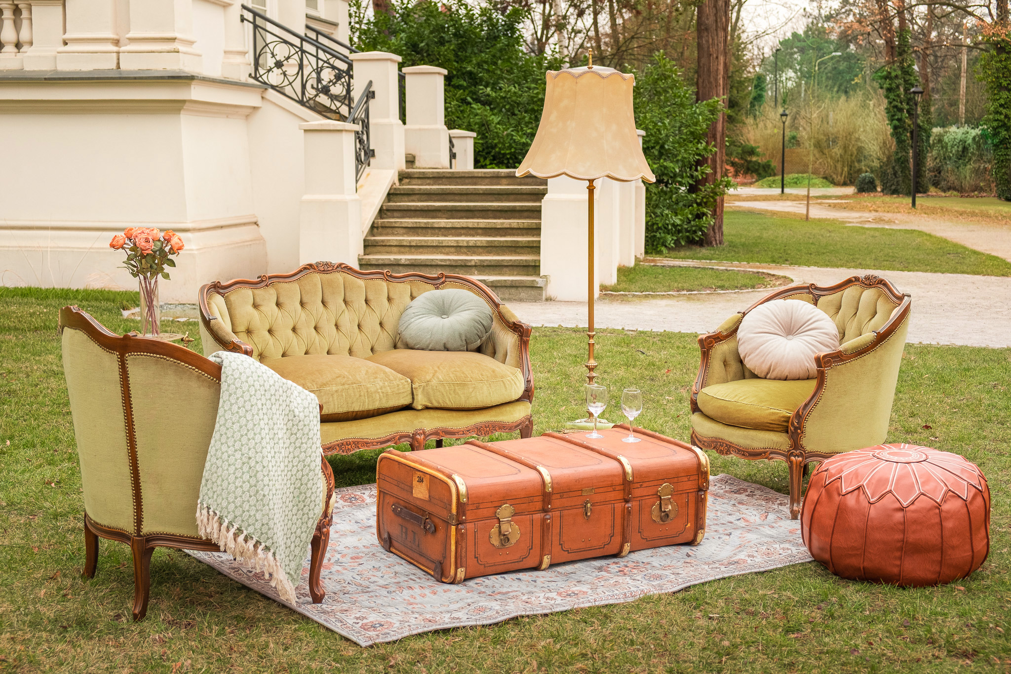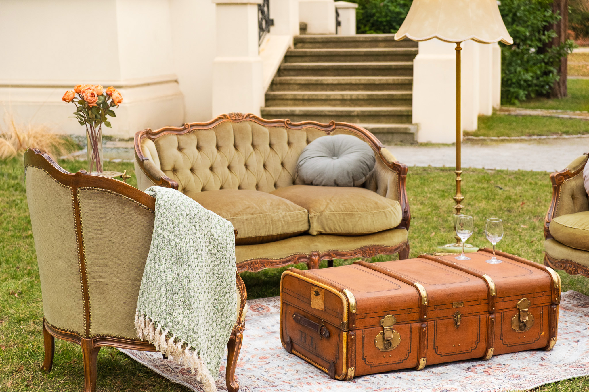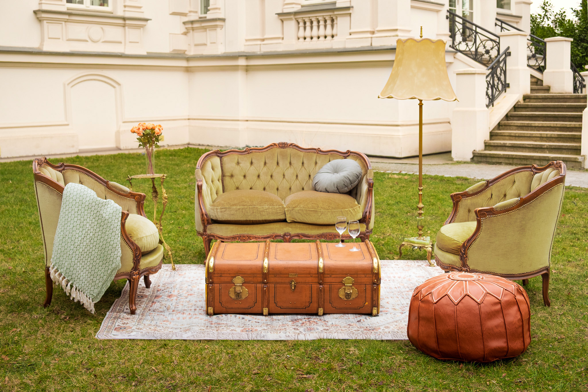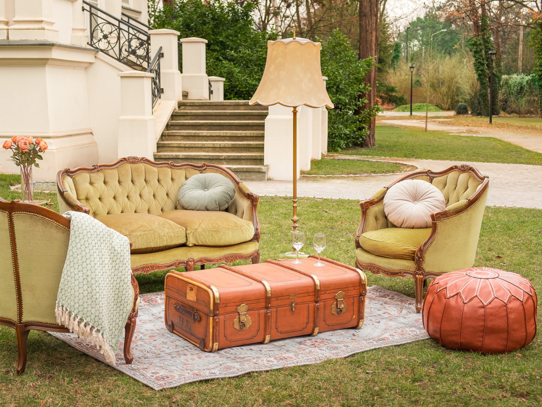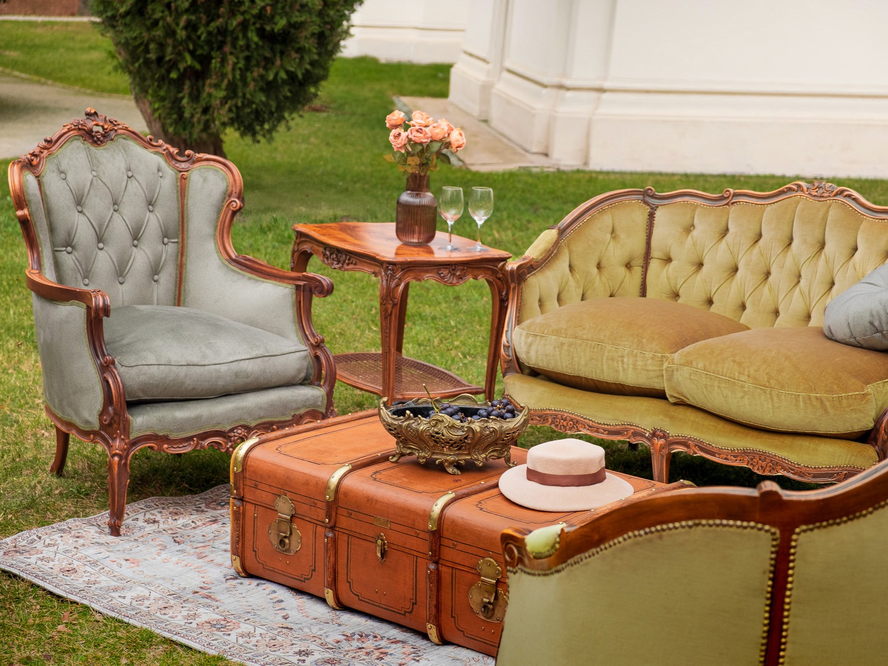 Zjawiskowy zestaw, który przyciąga spojrzenia głębokim pikowaniem i szlachetnym wykończeniem. Miękki aksamit w intrygującym odcieniu oliwki idealnie współgra z ramą w ciepłym kolorze drewna, którą wieńczą rzeźbione róże. Jego barwa przepięknie wpisuje się w plenerowe aranżacje, zapraszając gości do relaksu w klimacie stylowego garden party.