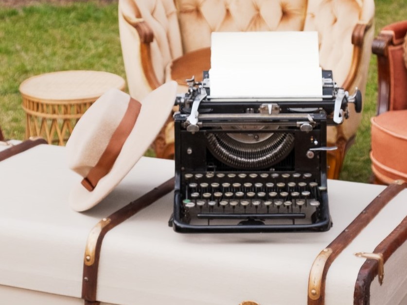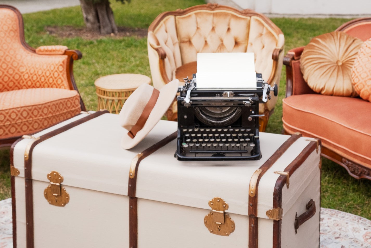 Stylowa, w pełni sprawna maszyna do pisania Continental, która doda wyjątkowego uroku retro każdej uroczystości.