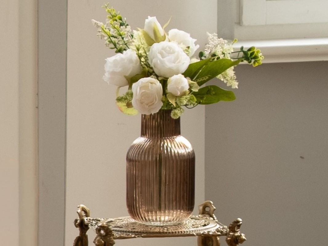 Ryflowany szklany wazon w kolorze brązowym.