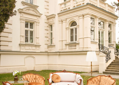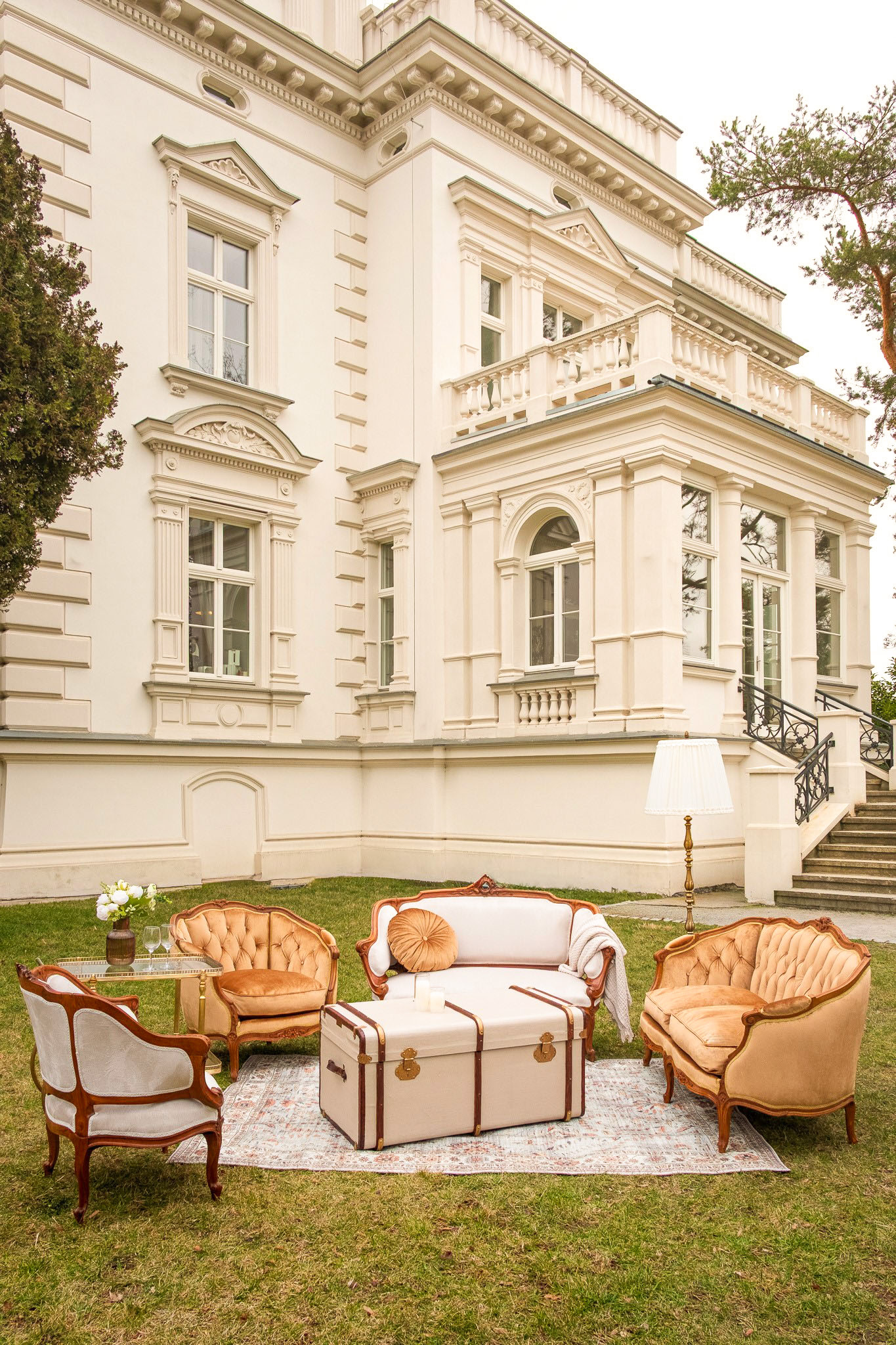 Cały zestaw doskonale wpisuje się w eleganckie, jasne wnętrza oraz uroczystości i romantyczne wesela w stylu glamour.